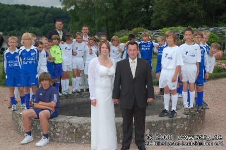 Unter einem ganz besonderen Stern stand das letzte Turnier des Tages: Die E1-Jugenden, allem voran die E1 des SCB starteten in ein hochkarätig besetztes Turnier. Ein ganz besonderes Turnier für die Kicker des SC man doch mit versammelter Mannschaft unmittelbar vor dem Turnier an der Orangerie dem Trainer Torsten Schmitt und seiner neuen Angetrauten Jenny Schmitt zur Hochzeit gratuliert!
