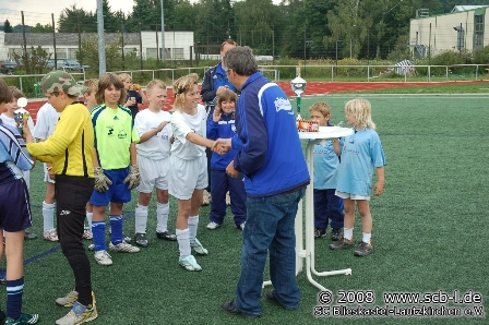 So ging man natürlich mit dem Ziel in das Turnier dem Coach ein besonderes Hochzeitsgeschenk zu machen und die beeindruckende Serie der Vorjahre fortzusetzen: Bei allen Turnieren der letzten 24 Monate war man zumindest im Finale gelandet und nur drei mal hat man dieses verloren unter anderem auch bei Jugendsportfest des SC in 2007. In diesem Jahr sollte das Glück dem SC aber hold sein: Blieskastel lieferte in der Vorrunde 3 Siege bei einem Remis ab und zog wieder ins Finale ein. Der Gegner dort: Der SV Kirkel und nach Toren von Steven Jann, Manuel Grieser und Dominic Brodinger war der Titel perfekt: Blieskastels E-Jugend gewinnt das eigene Sportfest…
