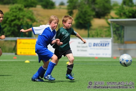Jugendstadtmeisterschaften… Für den SC Blieskastel-Lautzkirchen waren sie in den Vorjahren stets von großem Erfolg gekrönt und nicht wenige der SC Teams konnten ihren ohnehin schon grandiosen Saisonleistungen die Krone aufsetzen. Auch in diesem Jahr bei den Jugendstadtmeisterschaften in Biesingen sollte der SC wieder den einen oder anderen Titel abräumen: Den Anfang zur Erfolgsgeschichte 2008 machten unsere Kleinsten: Die G-Jugend konnte in Biesingen ihre ohnehin fast makellose Saisonbilanz noch weiter aufpolieren und in einem durch Mannschaften aus den Nachbargemeinden aufgefüllten Teilnehmerfeld den ersten Titel für den SC unter Dach und Fach bringen und somit auch den Titel des Vorjahres verteidigen.