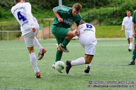 Wie will man einen Artikel nach zwei „Kerwespiele“ binnen acht Tagen beginnen: So widerholen sich die Ereignisse? Natürlich, denn die Vorzeichen für den SC waren nicht die schlechtesten: In der Vorwoche hatte es der SC bei der Blieskastler Kerb mit dem SV Breitfurt zu tun und bewältigte die durchaus brisante Aufgabe seinerzeit in einer fast schon nicht mehr für möglich gehaltenen Souveränität, die durchaus Hoffnung für die bevorstehenden Aufgaben machte, zumal sich die Reihen derer, die dem SC verletzungs- und berufsbedingt nicht zu Verfügung standen lichteten. Sprich der Kader des SC wuchs wieder auf ein erträgliches Maß und somit schien der SC gerüstet für die nächste Aufgabe, die da hieß: Kerwespiel in Bierbach! Somit also die Fortsetzung der durchaus vielversprechenden Geschichte, die in der Vorwoche an der Blieskastel gespielt wurde, nur eben an anderer „location“ um im Bild zu bleiben oder für die Feinde unnötiger Anglizismen: Woanders eben… Dass die Fortsetzungen erfolgreicher Filme auch in Hollywood mangels neuer und innovativer Ideen oftmals inhaltlich ein wenig zu wünschen übrig lassen ist nichts Neues, wie aber verhielt es sich beim SC an diesem zweiten Kerwesonntag? Diese Frage stellten sich viele, die dem SC nahe standen und auch solche, die das Geschehen in Blieskastel von außen begutachteten. Würde Blieskastel den just eingeleiteten Aufwärtstrend fortsetzen können. Eine durchaus mehr als nur rhetorische Fragestellung, zumal man es an diesem Sonntagnachmittag nicht unbedingt mit einem Lieblingsgegner zu tun hatte und das ist noch eine leicht Untertreibung: Bierbach hatte den SC im Aufstiegsjahr des BFC zwei Mal bezwungen und somit war der SC vor dem Kerwespiel in diesem, zugegebenermaßen noch recht jungen, Jahrtausend noch ohne einen einzigen Sieg gegen den Lokalrivalen. Nun also der nächste Versuch. Blieskastel reiste zur Kirmes nach Bierbach und zunächst sah es aus, als solle die Fortsetzung von Kassenschlager „Wemm iss die Kerb? – UNSER!!“ für den SC nicht gerade zum Blockbuster werden und auch das obligatorische Happy-End schien in ernster Gefahr. Die Anfangsphase in Bierbach gehört den Hausherren, die mit viel Elan und bedingungslosem Einsatz dem SC gehörigen Respekt einflößten und recht schnell folgte die logische Konsequenz: Michael Sievert trifft mit einem durchaus sehenswerten Tor zum 1:0 und spätestens jetzt war man in Bierbach in Kerwestimmung. Blieskastel hatte spätestens jetzt sichtlich Probleme: Offensiv lief beim SC kaum etwas zusammen, im Mittelfeld produzierte man reihenweise Fehlpässe der grausamen Art im Aufbauspiel und wenn man einmal in den gegnerische 16er kam, dann durch hohe Bälle die mit viel gutem Willen über Freund und Feind hinweg nach vorne geschlagen wurden. Keine Chance für die Stürmer zum Abschluss zu kommen und leichtes Spiel für die Verteidiger in der verkappten Dreierkette des BFC. Ebenfalls enttäuschend: Die Zweikampfbilanz des SC: Blieskastel verhielt sich in fast allen Mannschaftsteilen zu passiv in wichtigen Duellen und so kam es, dass man zur Pause mit einem 0:1-Rückstand noch sehr gut bedient war. Hätte Bierbach seine Möglichkeiten konsequenter genutzt, dann wäre das Spiel wohl schon länger beedet gewesen…