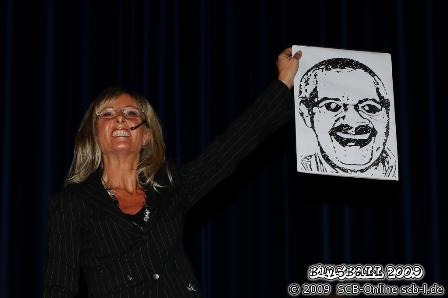 Gleich der erste Programmpunkt ließ die Augen der erfahrenen Bimsball Fans vor Freude aufleuchten: Als die schrille Schulglocke im Festsaal ertönte, wussten alle Bimsball-Erprobten Anwesenden, dass es wieder Zeit für die Schulklasse war: Die bewährte Truppe um Robin Klein, Cedric Kiefer, Marvin Bank, Celine Fremgen, Bimsball-Neuling und jüngster Bimsball-Teilnehmer Tim Collet, Matthias Schößer und Thomas Kiefer waren die Schüler der zugegebenermaßen etwas anderen Schulklasse, die unter der Aufsicht von Lehrerin Marion Klein auch in diesem Jahr wieder die Lachmuskeln der Anwesenden bis an die Grenzen beanspruchte. Wie bei jedem Bimsball fand sich natürlich auch der eine oder andere gestandene SCler in den fechen Unterhaltungen oder auf den Zeichnungen der Schüler wieder und gerade das sorgt in jedem Jahr für die ganz besonderen Lacher, die die Nachwuchskicker aus der Jugendabteilung des SC auf ihrer Seite haben. Der Applaus für den humorvollen, schlagfertigen und auch abseits des Fußballplatzes treffsicheren SC-Nachwuchs war auch in diesem Jahr überwältigend und den hatten sich die Kids mit ihrem, auch in diesem Jahr perfekten Auftritt auch verdient.