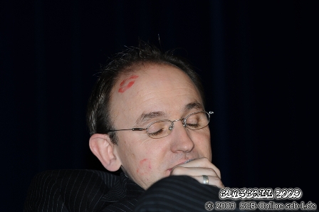 Und dann war es endlich soweit: Der blaue Vorhang öffnete sich und zwei alt-bekannte Bimsball Gesichter betraten die Showbühne: Matthias Schößer und Thomas Kiefer, ihres Zeichens die Moderatoren und damit die Gastgeber des Bimballs 2009, waren es dann, die, wie schon im vergangenen Jahr das Event mit einem sehenswerten Opener starteten, der selbstreden Geschmack auf mehr machte und einen sehr gelungener Start in die Jahresauftaktfeier 2009 darstellte. Schößer und Kiefer sollten die Zuschauer auch in diesem Jahr mit viel Witz und Charme durch den Abend führen und hatten dabei von Gesang, über Comedy bis hin zu Magie alles zu bieten, was das Bimsball-Fan-Herz begehrt. Die Zuschauer waren bereits jetzt sichtlich vom hochansteckenden Bimsball-Virus befallen und nach der offiziellen Eröffnung durch den 1. Vorsitzenden Günter Pusse war der Bimsball 2009 dann endgültig in vollem Gange. Pusse blickte in seiner Rede wie in jedem Jahr kurz auf das abgelaufene SC-Jahr zurück und zog eine durchweg positive Bilanz aus dem abgelaufenen Kalenderjahr 2008. Dann war es endlich soweit: Der offizielle Startschuss für das außersportliche Event des Jahres in den Reihen des SC Blieskastel-Lautzkirchen war gefallen und nun war die Bliesgau Festhalle endgültig ganz in der Hand der Bimsball Akteure, die die Zuschauer in den nächsten knapp drei Stunden in ihren Bann ziehen sollten. Es konnte losgehen, der Bimsball war eröffnet...