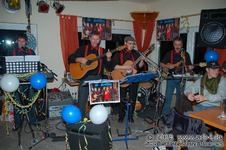 „Se Gollies“, die Hausband des SC alias Sebastian Kiefer, Günter Pusse, Daniela Pusse, Marco Hartmann, Sebastian Kohl und Harald Noe sorgten im SC Sportheim für Stimmung und brachten die zahlreichen Anwesenden zum Tanzen, Singen und Schunkeln. Ein stimmungsvolles Faschingstreiben also im Sportheim des SC, das noch bis spät in die Nacht dauern sollte und im nächsten Jahr sicherlich eine gelungene Fortsetzung finden wird…
