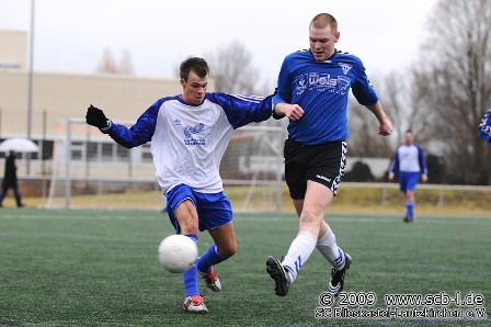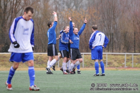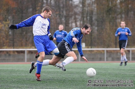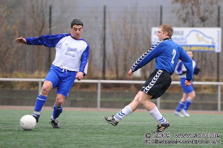 Strömender Regen sorgte dafür, dass die Zuschauerkulisse an der Florianstraße recht überschaubar war: Rund 100 Zuschauer wohnten dem ersten Heimspiel des SCB im neuen Jahr bei und waren natürlich gespannt auf die Reaktion, die der SC nach dem desolaten Auftreten in Ballweiler präsentieren würde. Eines zeigte sich aber recht schnell: Das Wort „desolat“ sollte man nicht unüberlegt gebrauchen, denn wenn die Niederlage in Ballweiler schon die Bezeichnung desolat verdiente, so fällt es schwer, die SC-Leistung in der ersten Halbzeit zu beschreiben. Sagen wir, sie war noch desolater, wenngleich Germanisten vor Schreck die Hände über dem Kopf zusammenschlagen werden. Eben das taten aber auch die SC-Fans: Blieskastel hatte in Durchgang eins zunächst einen brauchbaren Start und hätte nach einer Baier Chance mit 1:0 in Front gehen müssen. Es blieb beim 0:0 und die Gästen aus Ommersheim legten das an den Tag, was man eigentlich vom SC erwartet hätte: Der TuS zeigte eine gute Vorstellung und kämpfte verbissen in den Zweikämpfen. Dass dem SC so etwas nicht schmeckt ist seit der letzten Woche hinlänglich bekannt. So kam es, dass Blieskastel immer mehr ins Hintertreffen geriet und die nette Eskorte, die man Patrick Marouelli beim 1:0 anbot, war sinnbildlich für die bis dato unterirdische Leistung des SC. Auch nach dem Tor gab es von Blieskastler Seite keinerlei nennenswertes Aufbäumen und so kam es, dass Daniel Teuber ohne SC-Bewachung durch SC-Mittelfeld marschieren kann und dann auch noch die nötige Zeit hat, zu einem kontrollierten Abschluss zu kommen. Dass der Ball am Ende im Winkel landete ist sicherlich ein unglücklicher Umstand, man kann aber das Glück eben manchmal auch erzwingen, genauso wie das Pech. Was der SC nach dem 2:0 bot war schon eine Form der Leistungsverweigerung: Ommersheim startete einen sehenswerten Sturmlauf, der nur Dank Robert Harder und dem Aluminium am SC-Gehäuse nicht zu einem Debakel führte. So hart das klingen mag: Blieskastel war mit dem 2:0 zur Pause mehr als nur gut bedient und muss sich schon fragen lassen, wie es zu solch einem Auftreten vor eigenem Publikum kommen kann!