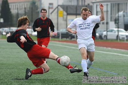 Es war ein enorm wichtiger Sieg, den der SC Blieskastel-Lautzkirchen in der vergangenen Woche feiern durfte: Mit etwas gemischten Gefühlen reiste man, nach einem durchwachsenen Start ins neue Jahr, zum schweren Lokalderby nach Wolfersheim, gab es doch gegen die Wölfe zuletzt immer heiße Gefechte. Aber die Abreise konnte man mit viel Selbstvertrauen im Gepäck antreten: Blieskastel hat einen knappen 1:0-Sieg gefeiert und sich damit in den Top-Five der Tabelle festgesetzt. Umso wichtiger, hatten doch auch die direkten Konkurrenten ihre Partien gewonnen. Aber in dieser Phase der Saison ist aber keine Zeit für langes Feiern und Ausruhen auf den just erarbeiteten Lorbeeren: Es geht weiter und mit dem TuS Ormesheim wartet schon der nächste Prüfstein auf Blieskastel. Zwar ist der TuS zurzeit nicht gerade der Kontrahent, der die Gegner mit den Knien schlottern lässt, aber dennoch konnte Ormesheim in der Vorwoche einen wichtigen Sieg gegen Habkirchen feiern, nachdem man eine Woche zuvor gegen den SV Altheim mit 8:0 unter die Räder kam. Mit 18 Punkten aus 22 Spielen hat der TuS vor dem Aufeinandertreffen mit dem SC eine nicht gerade überragende Bilanz vorzuweisen. Auch das Torverhältnis von 28:58 ist wohl mit ein Grund dafür, dass für den TuS auf Platz 13 der Aufstieg längst außer Reichweite ist. Was ebenfalls für nachdenkliche Gesichter vor dem Aufeinandertreffen mit Ormesheim sorgt, ist die Tatsache, dass der SC bis dahin in 2009 kein einziges Pflichtspiel auf seinem sonst so geliebten Kunstrasen gewinnen konnte. Nichteinmal ein Punkt war in dieser Saison auf dem einstigen Lieblingsbelag zu holen, gab es doch in Ballweiler, gegen den TuS Ommersheim und gegen den FC Bierbach empfindliche Niederlage. Nun war es an der Zeit, die Heimschwäche zu beenden, denn auf Dauer wird meine seine Heimspiele gewinnen müssen, um oben dabei zu sein. Die Vorraussetzungen für den angestrebten Bezirksliga-Aufstieg in Blieskastel waren also nach dem Wolfersheim-Spiel besser geworden, aber dennoch musste man nachlegen. Es galt für den SC, die positiven Eindrücke der letzten Wochen endlich mit einem Heimsieg zu untermauern.