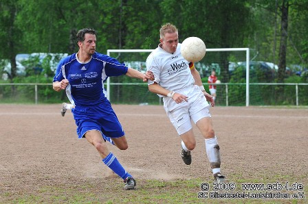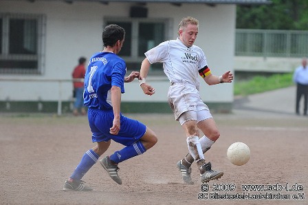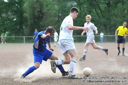 Auch nach dem Seitenwechsel gab es zunächst viel Stückwerk auf beiden Seiten und wieder waren es die hohen Bälle und die Zweikämpfe im Mittelfeld, die einen großen Teil der Spielzeit einnahmen. Die Hausherren waren es, die für die ersten vorgetragenen Angriffe sorgten und sich nun ein klares Chancenübergewicht erarbeiteten. Als ein Freistoß SC-Schlussmann Harder unter dem Körper durchrutschte, rettete der Pfosten den SC noch vor dem Rückstand, aber die Offensivbemühungen des SV wurden zielstrebiger und die Aufgaben, denen sich der SC gegenübergestellt sah, schienen mehr und mehr unlösbar. Der SC hatte in dieser Phase eine katastrophale Zweikampfbilanz vorzuweisen und es schien eine Frage der Zeit, ehe der SVA diese Passivität des SC ausnutzte. Harder kann zunächst abwehren, gegen den Nachschuss von Joschua Hartz ist er aber machtlos und plötzlich war der SVA verdientermaßen mit 1:0 in Front. Was für ein Malheur, dass der SC es nicht schaffte, diesen Angriff bereits im Mittelfeld im Keim zu ersticken, sondern dem SVA zu viele Freiheiten gewährte. Dass einige grobe Stellungsfehler und eine Verkettung unglücklicher Umstände ihr Übriges taten, passte ins Bild eines bis dahin schwachen SC. Nur wenige Zuschauer glaubten nun noch ernsthaft an eine Aufholjagd des SC, war dieser doch bis dahin in der Offensive viel zu harmlos, um die Wende zu erzwingen. Aber nun passierte, womit kaum einer rechnete: Blieskastel begann nach einigen Umstellungen plötzlich mit dem Fußballspielen, man wurde aber das Gefühl nicht los, dass es zu spät war, als dass man noch etwas Zählbares aus Altheim entführen könnte. Die Partie gewann nun, nicht zuletzt aufgrund der steigenden Spannung, mächtig an Fahrt und Blieskastel war endlich aus seiner zunehmenden Lethargie erwacht. 10 Minuten vor dem Ende dann der Lohn für die Bemühungen des SC: Markus Grötsch wuchtet eine Flanke unhaltbar für SVA-Schlussmann Oliver Meiser per Kopf zum 1:1 ins Netz und die Partie war nun wieder offen. Dass der psychologische Vorteil nun auf Seiten des SC war, muss nicht sonderlich erwähnt werden und so machte der SC ein ums andere Mal über die Außenbahnen Druck. Aber auch Altheim blieb gefährlich und der Ausgang der Partie war bis zum Abpfiff völlig offen. Am Ende blieb es beim leistungsgerechten 1:1-Unentschieden in einer Partie, in der die Schlussphase ein wenig für die 60 Minuten lang schwache Partie entschädigte.