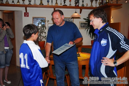 Am zweiten Tag des Jugendsportfestes 2009 des SC Blieskastel-Lautzkirchen standen die Turniere der F-, G- und E-Jugend an. Abgerundet wurde der Spieltag durch ein Einlagespiel der hauseigenen B-Jugend gegen die SG Hassel. Am frühen Morgen versammelten sich die F-Jugenden aus Niederwürzbach, Biesingen, Bierbach, Furpach, Kirkel und die F-Jugend des SC an der Florianstraße. Gleich zu Beginn entwickelte sich ein äußerst munteres Turnier auf hohem Niveau. In Gruppe 1 kam es zum Kopf-an-Kopf-Rennen zwischen dem Gastgeber aus Blieskastel und dem FV Biesingen um das Ticket fürs Finale. Beide Mannschaften trennten sich in den direkten Duellen der 3er-Doppelrunde zweimal mit einem Remis und so mussten am Ende die Ergebnisse der Spiele gegen den FC Bierbach den Ausschlag geben: Der FV Biesingen erspielte sich im letzten Gruppenspiel gegen den BFC mit einem 7:0-Erfolg die um drei Tore bessere Tordifferenz als der SC und zog somit ins Finale ein.