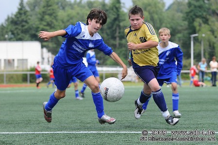 Das erste Turnier bestritten die D-Jugenden und das Turnier der Jahrgänge 1997 und 1996 war auch gleichzeitig das Turnier mit dem größten Teilnehmerfeld. Aus Biesingen, Elversberg, Blickweiler, Erfweiler-Ehlingen, Bliesmengen-Bolchen, Kirkel, Niederwürzbach, Hassel, Einöd um vom Gastgeber aus Blieskastel waren die Teams angereist und von Beginn an gab es Spannung en masse: In Gruppe 1 waren es der Gastgeber aus Blieskastel und der SV Elversberg, die sich ein verbissenes Duell um den Gruppensieg lieferten. Blieskastel dominierte die Gruppe, war aber nicht in der Lage, die Überlegenheit in Tore umzumünzen und musste so nach zwei torloses Remis und zwei klaren Siegen mit dem Spiel um Platz 3 Vorlieb nehmen.
