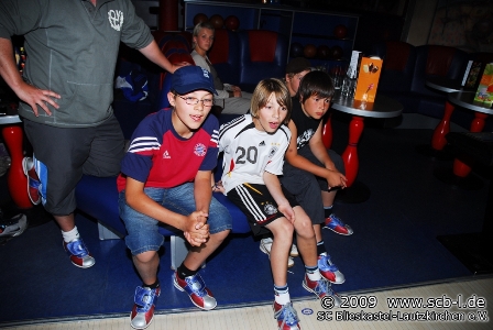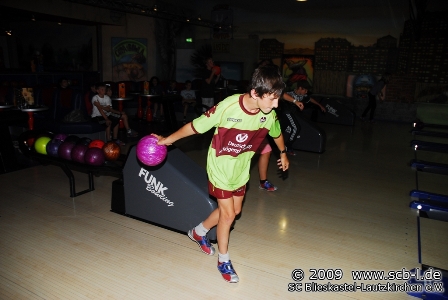 Auf große Fahrt ging dagegen die D-Jugend: Die „alten Hasen“ machten sich mit ihren Betreuern auf den Weg nach Dirmstein in der Pfalz um dort einer ganz besonderen Freizeitbeschäftigung nachzugehen: Fußballgolf stand auf dem Programm und auf dem 18-Loch Golfplatz, der artgerecht nur mit dem Fuß und Fußbällen gespielt wurde trumpfte der SC Nachwuchs groß auf, stellte man doch Loch für Loch sein Ballgefühl unter Beweis. Nach erfolgreichem Golfen ging es weiter: Beachsoccer stand auf dem Programm und auch hier hatten die SCler bei mittlerweile hochsommerlichen Temperaturen viel Spaß. Nachdem man sich mit dem Mittagessen im Soccerpark gestärkt hatte ging die Reise weiter: Im Grünstadt im Freibad verschaffte man sich Abkühlung für den nächsten Programmpunkt: Im Bowling Center in Kaiserslautern war Geschicklichkeit außerhalb des Fußballplatzes gefragt und auch hier endeckten einigen Nachwuchskicker beim fast dreistündigen Spiel ungeahnte und bis dato unentdeckte Fähigkeiten, ließ man doch die Kegel genauso hilflos, wie oftmals die Gegenspieler im Spiel. Es folgte die Rückfahrt nach Blieskastel und dort angekommen versammelte man sich nach dem Abendessen zusammen mit der E-Jugend zum gemeinsamen Nacht-Fußball. Um die Mitternachtsstunde wurden dann auch die letzten SCler am Lagerfeuer müde und legten sich in die Zelte um zu ihrem verdienten Schlaf zu kommen.