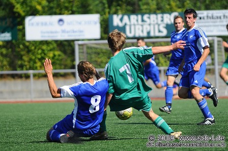 Endlich hat es also geklappt und der erste Dreier des SC in der neuen Bezirksliga ist unter Dach und Fach. Sowohl psychologisch, als auch ob der Punktausbeute war dieses Spiel für den SC von größter Bedeutung. Blieskastel hat gezeigt, dass man in der Lage ist Spiele zu gewinnen und noch dazu mit einer gewissen Souveränität. Blieskastel war im Offensivspiel wesentlich agiler als noch in den Vorwochen und stand in der Defensive bombensicher. Die Rückkehr von Steffen Noserke auf die Verteidigerposition brachte dem SC sichtlich Stabilität, trat doch SVA-Goalgetter Rüdiger Hauck, wie schon in den letzten Spielen gegen den SVA gegen Noserke nie in Erscheinung. Eben gegen diese stabile SC-Defensve fand der Gast aus Altheim nie ein Mittel und so hatte Blieskastel kaum einmal eine brenzlige Situation zu überstehen. Insgesamt war der Auftritt des SC gegen Altheim die mit Abstand beste Saisonleistung des SC und das nicht nur aufgrund des Resultats.