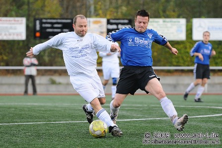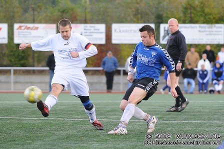 Auch nach dem Seitenwechsel sollte sich aber schnell der Gast aus Ommersheim ein Übergewicht erarbeiten. Der TuS drückte nun vehement und mit fortschreitender Spieldauer schlichen sich auch immer mehr ruppige Aktionen und kleine Fouls in eine anfänglich faire Partie ein. Ommersheim schien schon jetzt den Unparteiischen als Schuldigen für den Rückstand ausgemacht zu haben, diese Attitude sollte bis zum Schlusspfiff und darüber hinaus Bestand haben. Fußballerisch war es der SC, der durch Konter immer wieder gefährlich wurde, während dem TuS vor dem gegnerischen Tor weiterhin die nötige Konsequenz fehlte. Die Partie ging nun in die entscheidende Phase und jedem war klar, dass sie in den nächsten Minuten ihren Sieger finden könnte. Blieskastel versuchte nun die Vorentscheidung zu erzielen, aber auch Ommersheim war spätestens seit der Einwechslung von Goalgetter Benedikt Baudy rund 30 Minuten vor dem Ende auf Kurs, den Ausgleich zu erzielen. Wieder sollte es ein SC-Angriff über die Außen sein, der zum Erfolg führte. SC-Coach Leonhardt setzte sich 20 Minuten vor dem Spielende vorbildlich auf der linken Außenbahn durch und wieder es SC-Torjäger Flavio Baier, der in echter Stürmermanier das 2:0 für den SC erzielte. Ommersheim schien nun angeknockt, mobilisierte aber zum Spielende zusätzliche Kräfte. Ein Halten im SC-Strafraum an Benedikt Baudy, der sich aber befreit und völlig frei im SC-Fünfmeterraum an Robert Harder scheitert, brachte den TuS dann endgültig dazu, seine Unzufriedenheit gegen den Unparteiischen zu kanalisieren. Eine Szene, über die man diskutieren kann, wäre doch ein Elfmeterpfiff durchaus im Bereich des Möglichen gewesen. Die Emotionen kochten nun einmal mehr hoch. Es folgten heftige Wortgefechte des TuS mit dem Unparteiischen und Ommersheim brachte sich damit nun selbst aus dem Konzept.