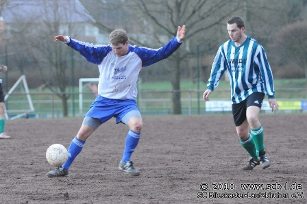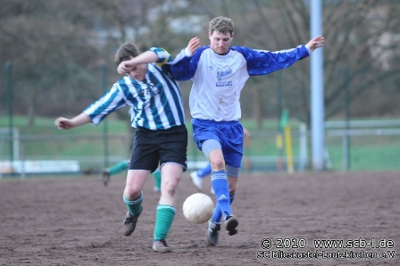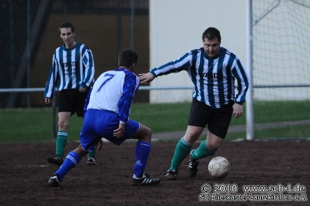 In Rohrbach entwickelte sich auf einem Hartplatz in katastrophalem Zustand eine hart umkämpfte Partie, in der zunächst die Hausherren Feldvorteile vorzuweisen hatte. Blieskastel tat sich gegen die Hausherren schwer und kam in der Offensive nur selten zur Entfaltung. Rohrbach aber konnte zunächst keinen Profit aus dieser anfänglichen Lethargie des SC schlagen und so kam es, dass Blieskastel nach und nach besser in die wichtige Partie kam. Der SC kämpfte sich nun zurück in die Partie und setzte ein deutliches Ausrufezeichen, als Flavio Baier nach 18 Minuten das wichtige 1:0 erzielte. Das Führungstor verlieh dem SC sichtlich Auftrieb und sorgte gleichermaßen dafür, dass beim SV Rohrbach II der Unmut wuchs: Nur 120 Sekunden nach dem 1:0 setzte Flavio Baier ein zweites Ausrufezeichen, als er zum 2:0 einnetzte. Der Baier-Doppelschlag kam für den SC Blieskastel-Lautzkirchen zum exakt richtigen Zeitpunkt und knockte die Hausherren sichtlich an. Nun hatte der SC Oberwasser und kontrollierte die zunächst ausgeglichene Partie. Das Offensivspiel des SC gewann nun deutlich an Durchschlagskraft und so war es SC-Kapitän Steffen Noserke, der nach 27 Minuten sogar auf 3:0 erhöhte. Der dritte Noserke-Treffer in dieser Saison sorgte für eine Vorentscheidung, war doch der Wille der Hausherren nun endgültig gebrochen. So hatte der SC nun leichtes Spiel und es ging mit einer sehr komfortablen 3:0-Führung in die Pause.