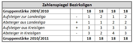 Halten wir also fest: Für den Abstieg aus de Bezirksligen gibt es zwei Konstellationen mit drei Absteigern und jeweils eine Konstellation mit zwei oder vier Absteigern. Man sollte als im unteren Tabellenkeller durchaus mit dem „Worst-case-Szenario“ rechnen:
