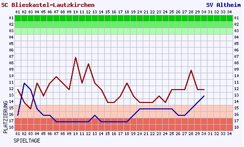 Mindestens genauso spannend wie der Titelkampf ist aber derzeit der Kampf um den Klassenverbleib in der Bezirksliga Homburg: Nachdem sich die Landesliga-Reserve aus Rohrbach bereits frühzeitig aus der Bezirksliga Homburg verabschiedet hat, sind es mittlerweile wohl sechs Vereine die um die maximal drei restlichen Abstiegsplätze mit allen Mitteln herumkommen wollen. Je nach Stand der Relegation und der Kräfteverhältnisse in der Landesliga werden von diesen sechs Mannschaften also wohl bis zu drei Teams den Weg in die Kreisligen antreten. Der Saisonverlauf der sechs Kandidaten auf den Abstieg könnte allerdings unterschiedlicher kaum sein, kommt doch beispielsweise Walsheim von ganz oben auf den zweitletzten Tabellenplatz, auch Bierbach kommt aus dem Mittelfeld und kam erst vor einigen Wochen auf einem Abstiegsplatz an, während Altheim schon seit dem Saisonende in dieser gefährlichen Region der Tabelle zu Hause ist: