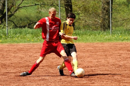 Für die DJK Ballweiler-Wecklingen II setzte es vor Wochenfrist einen 1:3-Niederlage gegen die SVG Bebelsheim-Wittersheim, unter der Woche jedoch konnte die Verbandsligareserve mit 7:0 gegen Alschbach gewinnen und sich mit 40 Zählern auf dem 10. Platz einfinden. Die SG Webenheim-Mimbach erwies sich in der vergangenen Woche als Punkteschreck für die vermeintlichen Favoriten und spielte zunächst 1:1-Unentschieden gegen Niederwürzbach, bevor es im Nachholspiel gar einen 2:1-Erfolg gegen die Viktoria St. Ingbert zu feiern gab. So steht die SG mit 37 Punkten nur einen Platz hinter Ballweiler auf dem 11. Rang und man durfte gespannt sein, wer das direkte Nachbarschaftsduell für sich entscheiden würde. Knapp war es schon in der Hinrunde, als Webenheim sich mit 1:0 gegen die DJK durchsetzte. Weniger knapp ging es dagegen bei der Neuauflage des Duells zu: Es dauerte bis zur 25. Minute ehe die 100 Zuschauer das erste Tor bejubeln durften: Stefan Leinhäuser traf zum 1:0, bevor alles ganz schnell ging: Hubert Gälipp, erneut Stefan Leinhäuser und wieder Hubert Gälipp sorgten für eine deutlichen 4:0-Pausenführung für die DJK. Auch nach em Seitenwechsel zeigte sich die DJK treffsicher: Jonas Schmidt und Almir Melonivic erhöhten auf 6:0, ehe Christoph Moshcel der Ehrentreffer für die SG gelang: Ein Hennrich-Doppelschlag und ein Treffer von Almir Melonuvic in der Schlussminute sorgten am Ende für den 9:1-Kantersieg der DJK. Die Reserve der DJK schaffte einen 9:1-Kantersieg gegen Webenheim-Mimbach und bleibt mit 43 Zählern Zehnter, während Webenheim-Mimbach mit 37 Punkten Tabellenelfter bleibt.