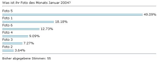 Hier das Endergebnis unserer Abstimmung zum Bild des Monats Januar Febraur 2005: