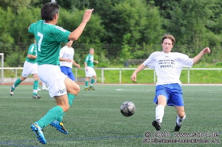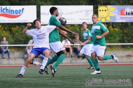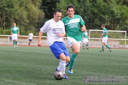 Die Partie in Blieskastel begann zunächst wie erwartet und wie schon im Vorspiel der zweiten Mannschaften gesehen, als die Sportfreunde mit einer deftigen 0:11-Packung auf die Heimreise geschickt wurde. Der SC dominierte eine zunächst sehr einseitige Partie und erarbeitete sich Torchancen im Minutentakt. Immer wieder wurde Reinheims Torhüter Thorsten Becker auf die Probe gestellt und tatsächlich schaffte es Reinheim die ersten Minuten mit vereinten Kräften ohne Gegentor zu überstehen. Reinheim fand in der Offensive zunächst nur nach Standards statt und hatte Probleme sich vor das SC-Tor zu kombinieren. Dennoch kam Reinheim, nachdem man die Anfangsdruckphase des SC überstanden hatte, besser in die Partie und das anfänglich sehr muntere Spiel verflachte zusehends. Die anfängliche Überlegenheit des SC war nun Ereignislosigkeit gewichen und so ging es mit einem torlosen Remis in die Pause obwohl der SC genügend Chancen gehabt hätte bereits zur Pause eine Führung im Rücken zu haben.