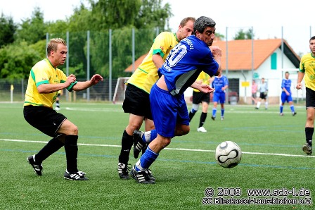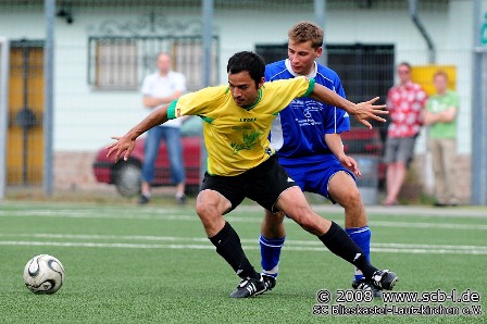 Der Saisonstart des SC rückt näher und zu einem der letzten Tests zog es den SCB zum frisch gebackenen Aufsteiger in die Bezirksliga aus Ensheim. Die heimische SG hatte über das Wochenende ein Trainingslager absolviert und das Spiel gegen den SC war bei schwülen Temperaturen der Schlussstrich unter ein sicherlich schweißtreibendes Wochenende. Allen Strapazen zum Trotz entwickelte sich von der ersten Minute an eine muntere PArtie, in der beide Mannshcfaten einige Laufbereitschaft und viel Biss im Zweikampf an den Tag legten.