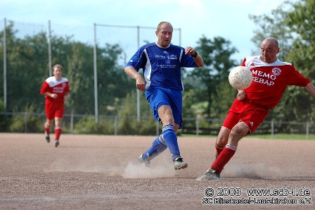 Die Partie in Erfweiler-Ehlingen stand für den SC nicht unter den besten Voraussetzungen: Zahllose Verletzte und ansonsten verhinderte Spieler machten Coach HP Harz im Vorfeld Kopfschmerzen und so war das Team, dass in Erfweiler den Vorzug erhielt auf einigen Positionen verändert. Blieskastel kam zunächst gut in die Partie: Der SC versuchte das Spiel an sich zu reißen und erarbeitete sich eine leichte Feldüberlegenheit. Erfweiler dagegen hatte einige Probleme und es schien als wäre der Führungstreffer des SC nur eine Frage der Zeit. So kam es dann auch: Michael Schwerdt bereitet SC-Angreifer Flavio Baier mustergültig vor und der vollstreckt zum verdienten 1:0-Führungstreffer für den SC. Nach dem Führungstreffer dann aber Ernüchterung: Anstatt auf das zweite Tor zu drängen hatte der SC plötzlich Probleme die bis dahin harmlosen Gäste zu kontrollieren. Erfweiler kam nun besser in die Partie und hatte zunächst nach Weitschüssen erste Möglichkeiten. Ein abgefälschter Schuss an den Außenpfosten die bis dahin größte Gästechance. Der SC, der nun auf den verletzten Jörg Leonhardt verzichten musste, lud die Hausherren nun förmlich ein, selbst in der Offensive aktiv zu werden, so war es dann auch eine einzigartige Fehlerkette seitens des SC, die den Ausgleich für die Gäste vorbereitete. Nach dem Ausgleichtreffer verflachte die ohnehin schwache Partie noch weiter und so blieb es bis zur Pause beim 1:1-Remis, das aufgrund der starken Phasen beider Team sicherlich ein gerechtes Halbzeitresultat darstellte.