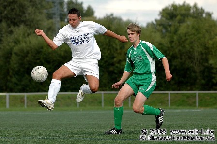 Bereits nach drei Minuten rettete der Innenpfosten für den SC. Der frühe Führungstreffer viel dann aber auf der anderen Seite: Daniel Bartmann brachte die Hausherren aus 16m mit 1:0 in Front, worauf die Gäste schon nach fünf Minuten ihren Torwart wechseln mussten. Nach zehn Minuten gelang Fabian Dingert der Ausgleich, was für einen regelrechten Aufschwung der DJK sorgte. Gerade einmal sieben Minuten später wuchtete Lucien Breyer eine Flanke per Kopf zum 1:2 in die Maschen. Blieskastel stand regelrecht unter Schock, bemühte sich dennoch im Offensivspiel. Bis zum Sechzehner kombinierte man gefällig, war jedoch anfällig für Konter. So auch nach knapp 40 Minuten. Hammann stoppte Dingert und sah rot, Christian Geble musste nun für den SC zwischen die Pfosten, hatte beim fälligen Strafstoß von Martin Sauer allerdings keine Abwehrschance. In der Nachspielzeit erhöhte Ballweilers Henrich per Weitschuss sogar noch auf 1:4. Ein deutlicher Dämpfer zur Pause.