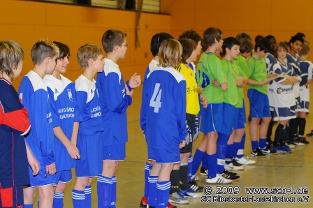 Auch für die D-Jugend des SCB gab es am Wochenende den verdienten Lohn für eine überragende Hallenrunde: Blieskastel durfte bei den Kreismeisterschaften vorspielen und hatte es dort mit den besten Teams der Ostsaarkreises zu tun: Gleich im ersten Spiel musste der SC gegen den Mitfavoriten aus Spiesen ran und Blieskastel hielt gegen den SV gut mit: Zwar hatte Spiesen leichte Vorteile, dennoch schaffte es der SC lange die Partie offen zu gestalten: Zwei Minuten vor dem Ende dann de rSchock: Die Borrussia nutzt einen individuellen Fehler des SC zum 1:0 und bestraft die Jungs in Blau damit ganz bitter. Viel bitterer als die Niederlage: SC Kapitän RObin Rebmann verletzte sich in diesem Spiel und stand für den restlichen Turnierverlauf nicht mehr zur Verfügung. Mittlerweile stellte sich heraus, dass es sich glücklicherweise Glücklicherweise nur um eine Bänderdehnung handelt. Trotzdem von dieser stelle gute Besserung Robin.