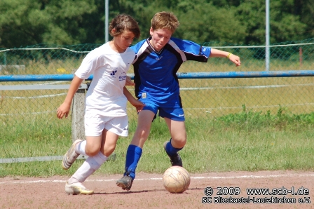 Blieskastel ging als klarer Favorit in das Stadtmeisterschaftsrennen und gleich im ersten Spiel des Turniers erwischte die D-Jugend des SC gleich einen guten Start: Gegen den FV Biesingen war der SC das überlegene Team und Tore von Sebastian Kelm und Lars Ulrich sorgten für einen souveränen 2:0-Sieg des SC und den ersten Dreier bei der Stadtmeisterschaft.
