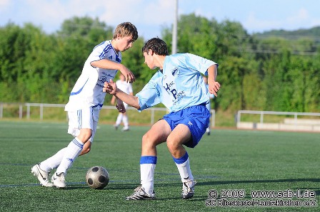 Im letzten A-Jugendspiel der Saison 2008/2009 beim SCB-Jugendsportfest zeigten beide Teams von Beginn an eine ausgeglichene Partie. Der SC zeigte sich anfangs noch etwas unsicher und war in der Offensive zu harmlos. Hassel hatte im Offensivspiel mehr Glück und konnte nach 26 Minuten schon mit 2:0 in Führung gehen. Doch der SC ließ nicht nach und konnte vor der Pause sogar die Partie zu seinen Gunsten drehen.