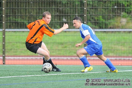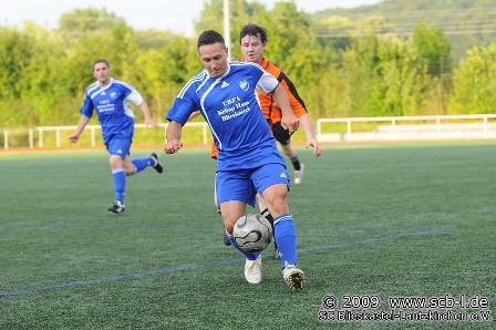 Das heiß-erwartete Lokalderby zwischen dem SC und der rund einem Kilometer entfernten SG Webeheim-Mimbach entwickelte sich sehr schnell zu einer mehr als nur einseitigen Angelegenheit. Alle, die auf eine Überraschung oder eine Blamage seitens des SC spekuliert hatten, wurden schnell eines besseren belehrt, übernahmen die Hausherren doch von der ersten Sekunde an das Ruder an der Florianstraße. Ein Fröhlich-Freistoß landete nach 17 Minuten im Tor von Ex-SCler Dirk Hussong und eröffnete damit einen wahren Torreigen für den SC: Flavio Baier erhöhte auf 2:0, ehe Neuzugang Ersim Atalay mit seinem ersten Treffer im SC-Trikot auf 3:0 erhöhte. Ein tolles Freistoßtor von Sven Sandmeyer schraubte das Ergebnis auf 4:0 in die Höhe, ehe SC-Coach Jörg Leonhardt das 5:0 erzielte. Ein Abstimmungsproblem in der SC-Defensive machte dann Dirk Schreiner das Abschiedsgeschenk: Schreiner, der zur neuen Saison zur SG wechselte, besorgte den 5:1-Anschlusstreffer und gleichzeitig den Halbzeitstand in einer Partie, die eigentlich nur in eine Richtung ging.
