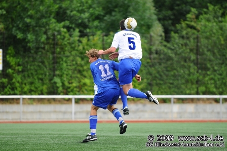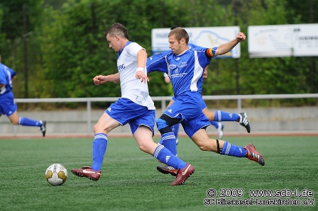 Mit der SG Ensheim war ein Bezirksligist aus der Nachbarklasse zu Gast beim SC und von Beginn an trafen zwei Teams auf Augenhöhe aufeinander. Beide Mannschaften ließen sich wenig Raum, Blieskastel gelang es aber immer wieder, durch schnelle Spielzüge über die Außenbahnen für Gefahr zu sorgen. Ensheim agierte ebenfalls konzentriert und riss Mitte des ersten Durchgangs ein wenig das bis dahin ausgeglichene Spielgeschehen an sich. Blieskastel reagierte nun mehr, denn selbst zu agieren und so fiel in dieser Phase nach 19 Minuten auch die verdiente Gästeführung. Blieskastel haderte zunächst ein wenig mit sich selbst, besann sich dann aber auf seine Stärken und kam wieder mit den bewährten Mitteln zu Offensivaktionen, die aber nicht konsequent genug abgeschlossen wurden. So blieb es zur Pause beim 1:0 für die SG, für den SC war aber sicherlich noch der Ausgleich drin.