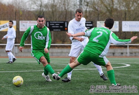 Von der ersten Minute an entwickelte sich an der Florianstraße eine Partie, die aufgrund zahlloser Fehler im Aufbauspiel beider Mannschaften, nur wenige Höhepunkte und Strafraumszenen zu bieten hatte. Rentrisch hatte zunächst ein deutliches Mehr an Ballbesitz, war aber im Spiel in die Spitze zu ungenau und feuter daher allenfalls Warnschüsse auf das Gehäuse von SC-Schlussmann Harder ab. Blieskastel setzte auf der anderen Seite auf Konter und die größte Chance vergab Flavio Baier, der eine stramme Leonhardt-Hereingabe per Kopf nicht im Gehäuse von Thorsten Traudt unterbringen konnte. So blieb es bis zur Pause bei einem torlosen Remis in einem bis dahin alles andere als hochklassigen Spiel.