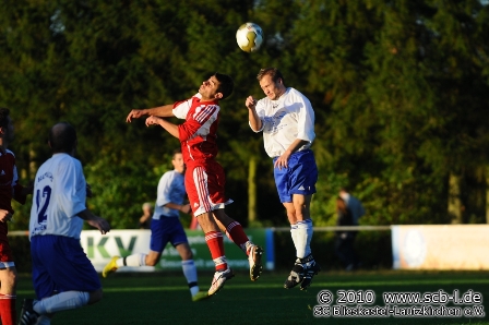 Beim Derby in Blickweiler sahen die rund 150 Zuschauer eine temporeiche Partie, die gleich von Beginn an intensiv geführt wurde. Nach neun Minuten scheiterte der SV Blickweiler zunächst an der Latte des SC-Gehäuses, im Nachsetzen war aber Marco Becker zur Stelle und vollstreckte zur frühen SVB-Führung. Somit war gleich viel Feuer in der Partie und auch der SC versteckte sich nicht: Flavio Baier verpasste nach 16 Minuten nur knapp, ehe SVB-Schlussmann Becker einen Pusse-Kopfball zur Ecke klärt. Dann aber nach 19 Minuten der Schock für den SC: In der eigenen Hälfte kommt der SV Blickweiler in der Nähe der Mittellinie zu einem Freistoß, den Juan-Carlos Corvalan in Richtung SC-Tor bringt. Matthias Schößer im SC-Tor verschätzt sich und so segelte der Ball unglücklich zum 2:0 ins Netz. Nun war der SC unter Druck, Blickweiler in komfortabler Position. Schößer konnte sich aber wenig später auszeichnen, als er mit Paraden gegen Wosnitza und Becker Schlimmeres verhindert. In der Offensive waren es beim SC dagegen Einzelaktionen die zu Tormöglichkeiten führten: Pusse setzt sich gegen eine Hand voll SVBler durch steckt auf Stumpf durch und dessen Schuss landet ind en Armen von Kevin Becker. Der SC war dem Anschlusstreffer nun sehr nahe, vergab aber allzu oft aus aussichtsreicher Position und lud die Hausherren zu Kontern ein, die diese abr nicht konsequent zu Ende spielten. Dann in der 37. Minute Jubel beim SC: Christian Müller setzt nach, kommt aus 18 Metern zum Schuss, Becker kann nur abklatschen und Baier ist zur Stelle um zum 2:1 einzuschieben. Blieskastel machte nun mächtig Druck, ehe ein Freistoß den Ausgleich brachte: Ein zweifelhaftes Handspiel führt zu einem Freistoß von halbrechter Position, Pusse zieht ab, Becker klatscht erneut nur ab und diesmal bedankt sich David Gentes mit dem 2:2-Ausgleich mit dem Pausenpfiff. Der SC hatte es also geschafft die Partie noch vor dem Seitenwechsel auszugleichen und beim Stande von 2:2 neu zu starten.