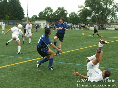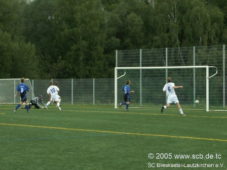 Dennoch machte sich der weitere Druck des SC bezahlt, als Peter Pusse den herauseilenden Torwart mit einem Heber zum 0:2 überwand. Zu diesem Zeitpunkt waren gerade einmal neun Minuten gespielt und schon jetzt gab es mehr Torszenen als zuvor in Durchgang eins. Peter Pusse hätte nur kurz nach seinem Tor für die Entscheidung sorgen können, köpfte jedoch freistehend, nach schöner Flanke von Andi Stutz, dem Torwart genau in die Hände. Somit blieb den Hausherren noch die Hoffnung auf Besserung.