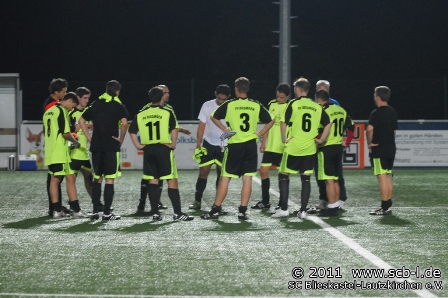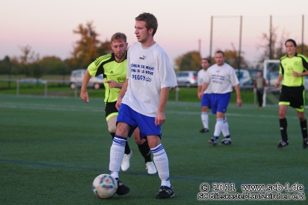 Das heiß erwartete Nachholderby in Biesingen hatte den Zuschauern gleich von der ersten Minute an einiges zu bieten, als schon nach wenigen Sekunden Pascal Schmelzer gegen eine wirre SC-Defensive im Strafraum vollkommen frei zum Abschluss kommt aber deutlich verzieht, der nächste Aufreger ließ aber nicht lange auf sich warten und so war es nach sieben Minuten ein unglaublicher Abstimmungsfehler zwischen SC-Libero Patrick Stumpf und Keeper Felix Bastian, als der Ball von Stumpfs Brust ins SC-Tor trudelt. Biesingen war somit mit 1:0 in Front, beim SC herrschte wirres Durcheinander in der Defensive und Harmlosigkeit im Offensivspiel war man ebenso planlos und so war es ein Elfmeter der den SC in die Partie zurück brachte: Peter Pusse wurde in der 20. Minute regelwidrig und recht unclever am Hochsteigen gehindert und Patrick Stumpf verwandelte gegen FVB-Kapitän Christian Ramelli souverän ins linke untere Eck zum 1:1-Ausgleich. Die Unordnung in der SC-Defensive hörte aber nicht auf und so war es nach 24 Minuten nur kurz nach dem Ausgleich erneut ein Stellungsfehler und eine Unkonzentriertheit der unsicher wirkenden SC-Defensive, der Biesingen jubeln ließ: Steven Becker durfte sich über zu viel Freiraum freuen und köpfte zum 2:1 ein. Biesingen war nun das deutlich aktivere Team und hatte Chancen: Ein Freistoß wurde von Bastian pariert, die SC-Defensive legte Steven Becker auf, der verzieht, ehe Schmelzer, Becker und erneut Schmelzer aussichtsreiche Chancen vergeben. Der SC schaffte nur durch einen Pusse-Weitschuss Entlastung durfte aber jubeln, als Biesingen nach einer Ecke zunächst einen Pusse-Kopfball von der Linie kratzt, dann aber nicht klären kann, bis man sich die Kugel am Ende selbst zum 2:2 ins Netz befördert. Der perfekte Zeitpunkt für den SC-Ausgleich, zeigte die Uhr doch 45 Minuten, allerdings hatte der SC noch einen weiteren Aussetzer zu bieten: Mit dem letzten Angriff der ersten Hälfte gelangt eine Flanke in den SC-Strafraum, wieder steht Pascal Schmelzer vollkommen frei und der köpft mit wenig Wucht aber viel Präzision ins lange Toreck zur 3:2-Pausenführung des FVB ein.