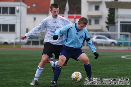 Beim heiß erwarteten Lokalderby an der Florianstraße gab es gleich vom Anpfiff weg mehr Hausmannskost als guten Fußball zu sehen. Zwar kamen beide Mannschaften zu einigen Torraumszenen, vorgetragene Spielzüge gab es aber nur selten zu sehen. Die größte Chance hatte der SC nach 21 Minuten, als Peter Pusse nach einem Sololauf das Tor von SVB-Keeper Eric Becker nur knapp verfehlte. In der Folge waren es die Hsausherren, die mit vielen Ballverlusten die Gäste zu gefährlichen Gegenstößen einluden und so kam Blickweiler dank einiger Unsicherheiten in der SC-Defensive zu Möglichkeiten. Dennoch ließ das Spiel weiter in vielen Punkten zu wünschen übrig, auch weil viele Unterbrechungen den Spielfluss noch mehr hemmten. In den Minuten vor dem Seitenwechsel besannen sich die Hausherren dann ein wenig mehr aufs Fußballspielen, war aber im Abschluss zu harmlos und so war es eine Freistoßfinte die kurz vor der Pause für die große SC-Chance zur Führung sorgte, es blieb aber beim torlosen Remis zu Pause.