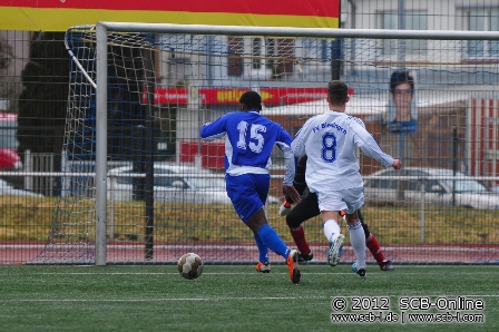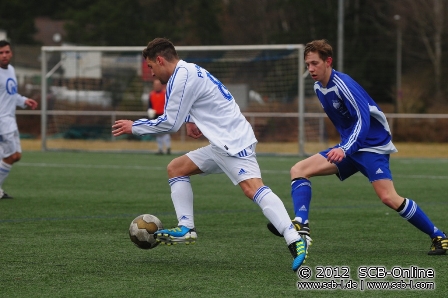 Das Derby des SC Blieskastel-Lautzkirchen gegen den FV Biesingen hatte an einem verregneten März-Tag vor 100 Zuschauern gleich einiges zu bieten und die aggressiven Gäste aus Biesingen setzen die Hausherren vom Anstoß weg unter Druck, so dass diese gleich zwei brenzlige Situationen zu überstehen hatten und einmal in höchster Not auf der Linie klärten. In einem kurzweiligen Spiel war es nach 29 Minuten eine Brengel-Flanke, die Yannik Moschel per Kopf abnahm, Ramelli im FVB-Tor den Ball aber an die Latte lenken konnte. Der SC hatte nach rund 30 Minuten eine Schwächephase zu überstehen, stand zu weit von den Gegenspielern entfernt und so war es ein Einwurf des FVB in Folge dessen eine Flanke in den SC-Strafraum segelt und Sascha Theiss nach 35 Minuten vollkommen frei stehend zur 1:0-Führung für den FVB verwandelt.