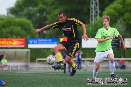 Im ersten Saisonspiel erwischte der SC Blieskastel-Lautzkirchen einen guten Start in die neue Spielzeit 2012/2013 und schon nach fünf Minuten war es Peter Pusse, der sich im Mittelfeld durchsetzen konnte und 18 Meter vor dem Tor zum Abschluss kam. SVG-Keeper Eric Lonsdorf konnte den Ball nicht festhalten und so feierte Neuzugang Benjamin Schwarz einen Einstand nach Maß, als er die Kugel über die Linie beförderte. In der Folge zeigte sich der SC engagiert und wurde belohnt, als Yannik Moschel nach 13 Minuten einen Ball mit einer schönen Direktabnahme zum 2:0 in die Maschen des SVG-Tore drosch. Der SC hatte in der Folge die Chancen die Partie frühzeitig zu entscheiden, ließ diese aber auf der Strecke. Die Partie verflachte nun mehr und mehr und auch wenn die SVG offensiv kaum gefährlich war konnte Admir Ramic mit dem Pausenpfiff eine Abstimmungsschwierigkeit in der SC-Defensive zum 2:1-Anschlusstreffer ausnutzen und mit dem Pausenstand die Partie erneut spannend machen.