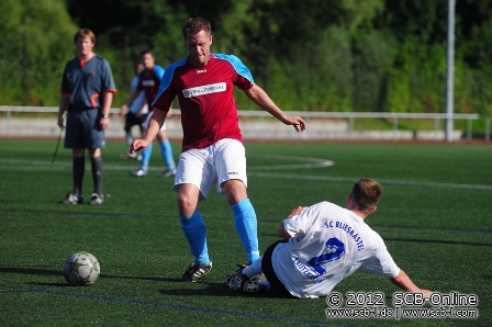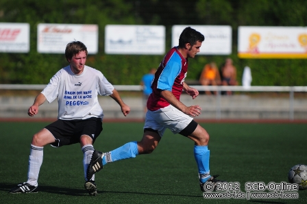 In Blieskastel-Lautzkirchen begann die Partie der ersten Mannschaft um 16:45 Uhr, die Partie der Reserven wurde hitzebedingt verlegt. Von Beginn an gab es erste Torchancen zu sehen und die Wölfe scheiterten nur knapp, als der SC im eigenen Strafraum an die eigene Latte klären kann. Nach kurzer Anlaufphase zeigte sich auch der SC Blieskastel-Lautzkirchen erstmals in der Offensive: Ein Agyei-Schuss landete am Außennetz, ehe Schwarz nach einem Meyer-Traumpass an Weinmann im Wölfe-Tor scheitert. Die Partie nahm nun langsam Fahrt auf, lebte aber auf beiden Seiten vor allem von Einzelaktionen. Nach 20 Minuten war es Yannik Moschel, der aus dem Rückraum vergab, ehe Peter Pusse nur drei Minuten später nach einem Solo deutlich vergab. Beide Teams gönnten sich in der Folge eine Schaffenspause, ehe es unmittelbar vor dem Seitenwechsel mächtig rund ging: Nico Welker nimmt im SC-Strafraum ein SC-Elfergeschenk dankend an und Patrick Götz verwandelt im Nachschuss gegen Robert Harder. 43 Minuten waren zu diesem Zeitpunkt gespielt. Aber auch auf der Gegenseite ging es rund: Meyer setzt Gärlipp unmittelbar nach dem Anstoß der Wölfe in Szene und der trifft zum 1:1-Ausgleich, was auch gleichzeitig der Pausenstand war.