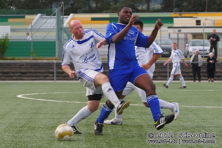Die Fußballfans in Hassel sahen an diesem Sonntag eine mehr als nur kuriose Partie, die vor allem den neutralen Zuschauern gefallen haben dürfte. Der SC hatte vor rund 75 Zuschauern den besseren Start in die Partie, Moschel und Schwarz vergaben aber die ersten Großchancen für den SC. Nach elf Minuten war es dann Matthias Meyer, der aus 25 Meter abzog und das Spielgerät unhaltbar für SGH-Keeper Peter Celim in den Winkel zimmerte. Der SC blieb am Drücker und nur 120 Sekunden nach dem 1:0 war es Philipp Detemple, der Benjamin Schwarz in Szene setzte, der den Ball im nachsetzen über die Linie des SGH-Tores drückte. Der SC schien die Partie im Griff zu haben offenbarte aber auch in dieser Partie große Schwächen in der Defensive. Hassel fand bis dahin offensiv nicht statt, war aber nach 20 Minuten hellwach, als Stefan Altmeyer im Strafraum zum Abschluss kam, den Pfosten traf und schließlich ein SCler den Ball selbst in die Maschen beförderte. Es war also wieder spannend, der SC vergab aber Chance um chance. Alleine Gärlipp hatte die Dreifachchance zur SC-Führung, vergab aber kläglich. Detemple, Pusse und Schwarz reihten sich in die Reihe derer, die große Chancen auf der Strecke ließen nahtlos ein. In der Nachspielzeit der ersten Halbzeit legte Gärlipp auf Schwarz quer und der verwandelte zur 3:1-Pausenführung für den SC.