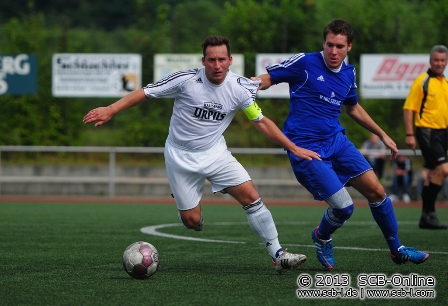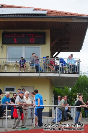 Vor 100 Fußballfans legte der SC mit viel Tempo los und erspielte sich gleich in den Anfangsminuten drei hochkarätige Tormöglichkeiten. Nach dem temporreichen Beginn plätscherte die Partie ohne Torraumszenen vor sich hin, bis Christian Kempf nach 27 Minuten schön freigespielt wurde und der FVB in höchster Not rettete. Der SC hatte nun deutlich Oberwasser und hatte nach 32 Minuten die nächste Großchance, als Ramelli gegen Kempf der Sieger blieb. Erst nach 35 Minuten war es der bis dahin harmlose FVB, der durch Daniel Lantz die erste Tormöglichkeit hatte. Pulver und Pusse vergaben auf der Gegenseiten die Großchancen zur Führung, ehe nach 40 Minuten der Bann gebrochen war: Biesingen vergab einen aussichtsreichen Konter der SC spielte über Moschel schnell nach vorne und am Ende war es Peter Pusse, der Christian Ramelli im FVB-Tor keine Chance ließ. Bis zur Pause blieb es bei der knappen Führung der Hausherren, die aber aufgrund der Chancen vollkommen in Ordnung ging.