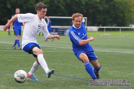 In Limbach hatten es sich die rund 80 Fußballfans kaum gemütlich gemacht, da war die Partie schon entschieden: Nach 180 Sekunden war es SC-Spielertrainer Philipp Niederländer, der von links eine Flanke in den Palatia-Strafraum brachte, Benjamin Schwarz legte selbige mustergültig auf Peter Pusse ab und der köpfte den SC zur frühen Führung. Die Palatia schien in der Anfangsphase völlig von der Rolle und ließ sich nur vier Minuten später anfängerhaft von einem langen Ball des SC überrumpeln und so konnte Pusse nach sieben Minuten zum 2:0 einnetzen. Als Pusse nach neun Minuten einen gruseligen Palatia-Fehlpass zum 3:0 ausnutzte, war der schnellste Hattrick der Saison perfekt und die bis dahin mehr als einseitige Partie schon entschieden. Limbach ließ den Frust über die Niederlagen nun oftmals in hart geführten Zweikämpfen aus, ehe Matthias Meyer das 4:0 per Freistoß erzielte, dem als indirekt ausgewiesenen Freistoß blieb die Anerkennung aber verwehrt, ehe die Partie ihren unrühmlichen Höhepunkt erhielt, als Yannik Hohmann Matthias Schößer übel von hinten umgrätschte. Der Unparteiische Markus Kennel aus Ottweiler zögerte keine Sekunde und verwies Hohmann für das hässliche Foul mit Rot des Feldes. Der SC antwortete mit Tore: Yannik Moschel traf nach 41 Minuten zum 4:0, ehe Benjamin Schwarz nach 44 Minuten den bemitleidenswerten Palatia-Schlussmann Andreas Schott umkurvte und zum 5:0-Pausenstand einschob.