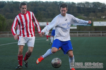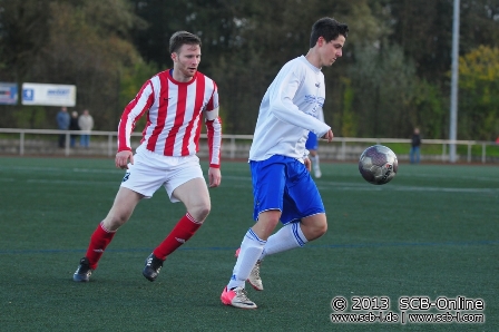 An der Florianstraße in Blieskastel gab es bei winterlichem Wetter und starkem Wind vor rund 100 Fußballfans schon nach 180 Sekunden die erste Großchance zu sehen, als der SC aus einem Getümmel im Strafraum gleich mehrmals zum Abschluss kam, DJK-Keeper Johannes Tabellion am Ende aber die Übersicht behielt. Nach sechs Minuten die erste DJK-Chance, dann nach 16 Minuten der Schock für den SC: Ein Weitschuss von Sajoscha Zapp aus über 30 Metern glitt SC-Keeper Felix Bastian durch die Hände und wie aus dem Nichts waren die Gäste mit 1:0 in Front. Dem SC steckte der unglückliche Rückstand merklich in den Knochen und so war es nach 20 Minuten erneut eine Verkettung von Fehlern in der SC-Defensive, die das 2:0 der Gäste Martin Burkhard begünstigten. Der SC kam nur schwer in die Gänge und machte vor allem im Spiel nach vorne zahlreiche Fehler. Nach 25 Minuten gab dann Christian Kempf einen der wenigen Warnschüsse des SC ab, Tabellion parierte aber ohne Probleme. So kam es, dass Dominik Zentz drei Minuten später die Vorentscheidung nur um Haaresbreite verpasste. Der SC dagegen offensiv weiter harmlos: Ein Müller-Schuss wird geblockt ehe eine Freistoßflanke den Anschlusstreffer brachte, eine Abseitsposition sorgte aber dafür, dass es zur Pause bei der 2:0-Gästeführung blieb.