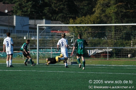 Das Lokalderby in Blieskastel bagnn gleich nach nur 4 Spielminuten mit einem Paukenschlag: Der Bierbacher Michael Sievert nutzte ein Abstimmungsproblem in der Blieskastler Defensive aus, läuft alleine auf Dirk Hussong zu, der kann zunächst noch parrieren, aber im Nachschuss kan Sievert per Kopf vollstrecken.