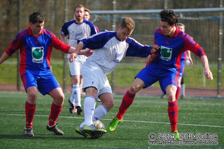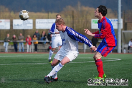 Bei nicht mehr ganz so frühlingshaftem Wetter wie noch in der Vorwoche sahen rund 100 Fußballfans das Duell des Tabellenvierten aus Blieskastel-Lautzkirchen mit dem Tabellenzehnten der SG Ommersheim-Erfweiler-Ehlingen. Der SC nahm das Heft von Beginn an fest in die Hand und hatte ein deutliches Plus an Ballbesitz. So war es wenig überraschend, dass Yannik Moschel die erste Großchance der Partie für den SC verzeichnete, als er in den Strafraum der Gäste eindringen konnte, aber knapp verzog. Der SC blieb am Drücker und wurde belohnt: Eine tolle Flanke von der linken Außenbahn landet bei Peter Pusse der vom Fünfereck ins kurze Eck einköpft und zum 1:0-Führungstor für den SC traf. Der SC war das eindeutig spielbestimmende Team und hatte den langen Ball über die SG-Defensive hinweg als Mittel Richtung Gästetor auserkoren, verzettelte sich aber mit zunehmender Spieldauer zunehmend. Die SG kam nun immer besser in die Partie und hatte den ersten Torschuss, als Tobias Jene nach 24 Minuten Maß nahm, aber verfehlte. Vor allem mit Weitschüssen tastete sich die SG nun an das Tor von SC-Keeper Marco Meyer heran, die nächste Großchance hatte aber der SC, als Pascal Reichardt in höchster Not vor dem einschussbereiten Philipp Niederländer klärte. SG-Keeper Hofmann war bereits geschlagen. Dennoch ließen die Gäste nicht locker: Nach einem tollen SG-Konter landete der Ball am Ende bei Goalgetter Benedikt Baudy, der in SC-Keeper Meyer seinen Meister fand. So blieb es zur Pause bei der knappen SC-Führung.