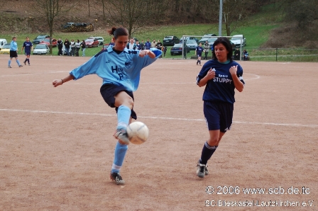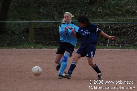 Wie im vergangen Jahr versuchten die SCB-Mädels nun die schwache erste Hälfte wettzumachen. Bis zur Strafraumgrenze sah dies auch gut aus, zudem brachte Agnes durch ihr gutes Stellungsspiel mehr Sicherheit in die SC-Defensive. Oftmals kam man über links durch Jessi in den Sechzehner doch der letzte Pass konnte von der Bierbacher Defensive immer noch irgendwie abgefangen werden. Man merkte, dass der Wille und Einsatz nun stimmte, doch es fehlte weiterhin das Mittel zum Erfolg.