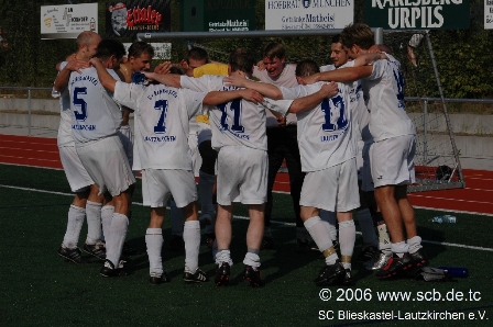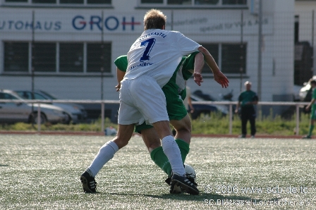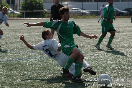 Bereits in der ersten Hälfte legte Blieskastel das größere Engagement an den Tag. Tormöglichkeiten gab es jedoch auf beiden Seiten noch nicht zu sehen. Schon nach wenigen Minuten musste SC-Verteidiger David Klingen verletzt das Feld verlassen, für ihn kam Frank Konrad in die Partie. Nach knapp 20 Minuten leitete Simon Kiefer, nach einem seiner vielen gewonnen Zweikämpfe, mit einem weiten Ball auf Peter Pusse, den schnellen Gegenangriff ein. Peter Pusse bewies Übersicht und bediente Sascha Stephan in der Mitte, der die Kugel zum 1:0 über die Linie schob.