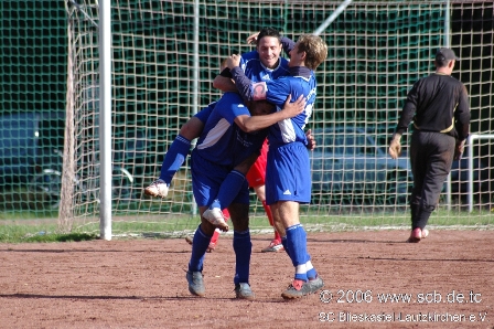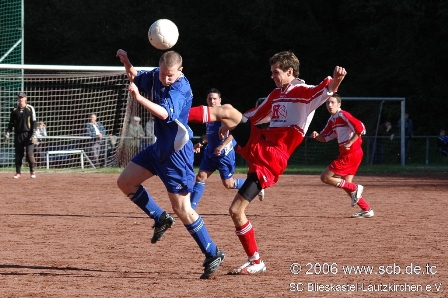 Die gut 100 Zuschauer, die zum Derby den Weg nach Alschbach gefunden hatten, sahen schon in der Anfangsphase des Lokalkampfes ein recht einseitiges Spiel. Der SCB bemühte sich die Partie zu kontrollieren und kam hin und wieder gefährlich vors Gehäuse der Hausherren. Die bis dahin größte Chance hatte Sascha Stephan, dessen Abnahme einer Flanke gut 2m vorm Tor noch in letzter Sekunde vom Alschbacher Verteidiger zum Eckstoß geklärt wurde. SCB-Schlussmann Markus Müller musste in Durchgang eins nur einmal aus brenzliger Situation klären und machte mit einem tollen Reflex die einzige Alschbacher Torchance zu nichte. In der Folgezeit übernahm der SCB immer mehr das Ruder, Alschbach hielt allenfalls kämpferisch dagegen und stemmte sich tapfer gegen den drohende Gegentreffer. Nach 18 Minuten war es dann aber aus SCB-Sicht endlich so weit: Flavio Baier konnte mit einem sehenswerten, gefühlvollen Lupfer über den Alschbacher Schlussmann den hochverdienten Führungstreffer erzielen.