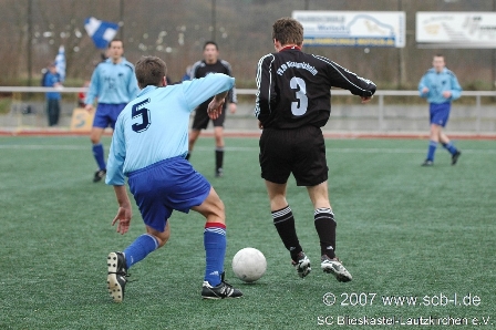 Nach zwei Niederlagen gegen Verbandsligisten aus Auersmacher und Jägersburg und einem Sieg gegen einen ersatzgeschwächten Bezirksligisten aus Hassel, stand für dem SCB mit dem FV Bischmisheim eine weitere harten Prüfung bevor, führte Bischmisheim doch unangefochten die Kreisliga A Halberg an. Zum ersten mal also ein nicht höherklassiger Gegner und für den SCB ging es gleich gut los: Schon mit dem zweiten Angriff ging man durch Flavio Baier mit 1:0 in Führung und nicht wenige glaubten wohl an eine kleine Überraschung in Blieskastel, konnte der SCB etwa den Tabllenführer der Halbergklasse ärgern. Aber der SCB ließ viele Wünsche offen: Nach dem 1:0 war von den Hausherren reichlich wenig zu sehen und Bischmisheim machte Dauerdruck aufs SCB-Gehäuse. Blieskastel dagegen gab das Ruder in dieser Phase völlig unverständlicherweise aus der Hand. Bischmisheim dagegen kombinierte gefällig und zeigte ein ums andere mal, warum man so souveräner Tabellenführer war. Und schließlich kam es wie es kommen musste: Bischmisheim nutzte seine Tormöglichkeiten konsequent wie es eine Spitzenmannschaft eben tut. Und so wurde aus einem 1:0 für den SCB innerhalb von nicheinmal 15 Minuten ein 1:3 Rückstand. Blieskatel präsentierte sich in dieser Phase desolat und konnte froh sein, dass der FVB den Ball nun ins Tor tragen wollte und auch das Aluminium auf der Seite des SCB war. Zur Pause blieb es also beim hochverdienten 3:1 für die Gäste aus Bischmisheim und bis dahin war es die mit Abstand schlechteste Leistung des SCB in der Vorbereitung.