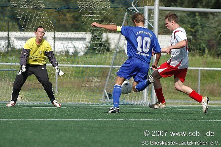 Erst eine Fröhlich-Ecke gefolgt von einem Munk-Kopfball brachte den SC mit dem 1:1 zurück ins Spiel. Nun lief der Ball auf Seiten der Hausherren. Bei einem Freistoß der Gäste wird ein gewonnener Harz-Kopfball zur Vorlage für Peter Pusse, der eiskalt zum 2:1 einnetzte. Der SC gab nun das Heft nicht mehr aus der Hand. Christian Müller besorgte zunächst das 3:1 ehe HP Harz ein Missverständnis der Alschbacher Defensive zum 4:1 nutzte. In der Schlussminute vergaben die Gäste eine Chance zur Ergebniskosmetik, mehr war allerdings mit zehn Mann auch nicht drin. Am Ende triumphierte der SC mit einem 4:1 – wie die Partie ohne den Platzverweis läuft wird man wohl nie erfahren...