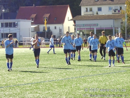 Nach der Pause begannen dann beim SVW die Auflösungserscheinungen: Mit 10 Akteuren begann man die zweite Hälfte, obwohl sich einige "verletzte" Auswechselspieler an der Außenlinie tummelten. So nahm das Schicksal weiter seinen Lauf: Wolfersheim ohne Chance und der SC kombinierte nach Belieben eine mehr als nur einseiteige Partie. Nach dem 10:0 dann das Armutszeugnis für jede Mannschaft: 4 weitere Akteure des SVW verließen ob der deftigen Packung das Feld mit sichtlich "schweren Verletzungen". Der möchtegern Titelaspirant aus Wolfersheim fiel im wahrsten Sinne des Wortes auseinander und kapitulierte vor der immensen blieskastler Übermacht. Der souveräne Schiedsrichter machte dann dem Debakel aus Sicht des SVW nach gut 75 Minuten ein Ende und Pfiff die Partie beim Stande von 11:0 ab.