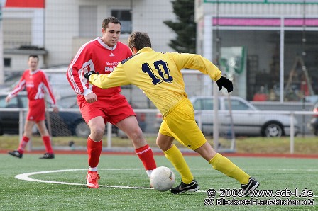 Drei Minuten vor dem Ende kommt ein TuS Akteur nach einem katastrophalen Stellungsfehler in der SC-Defensive frei vorm SC-Tor zum Schuss und schob souverän ein. Der mittlerweile eingewechselte Alex Dell im SC-Gehäuse war dabei ohne Chance. Aber die Partie war immernoch im vollen Gange und Spilertrainer HP Harz war es, der in der Schlussminute den Ball zum 4:3 für den Sc in s Netz befördert. Dies war auch gleichzeitig der Schlusspunkt unter dem ersten Sieg des SC in 2008.